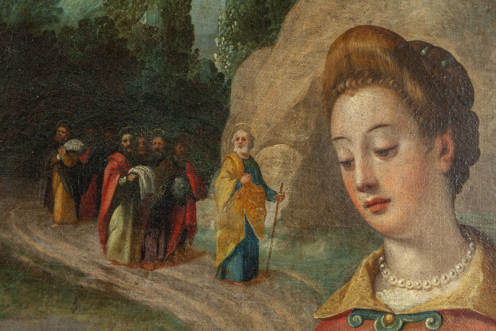 La tela narra una curiosa variante del tema ispirato al Vangelo secondo Giovanni nel quale viene inserita ai piedi della vera da pozzo la figura di un Angelo con un secchiello, forse ad indicare la diffusione del verbo verso i fedeli.