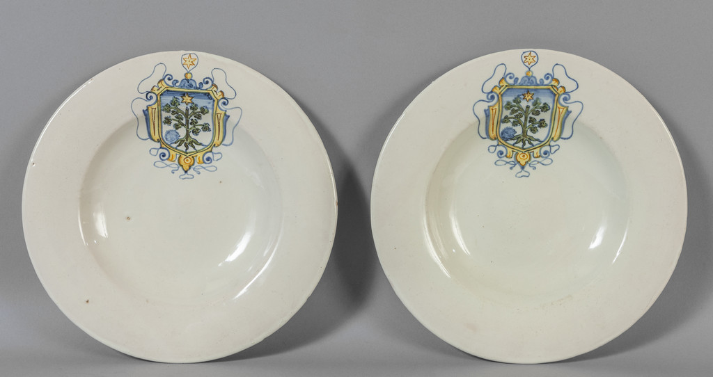 Coppia di piatti in ceramica decorati con stemma nobiliare in policromia, Castelli sec.XVII-XVIII