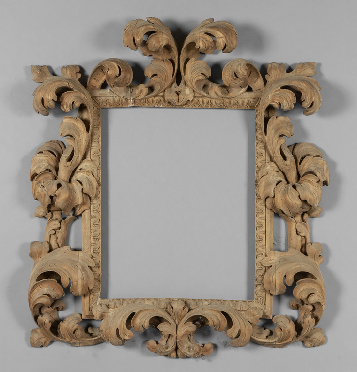 Grande cornice a volute in legno naturale, Roma fine sec.XVII