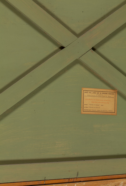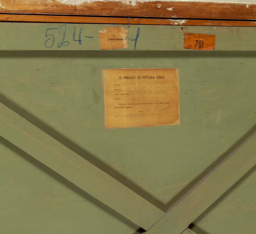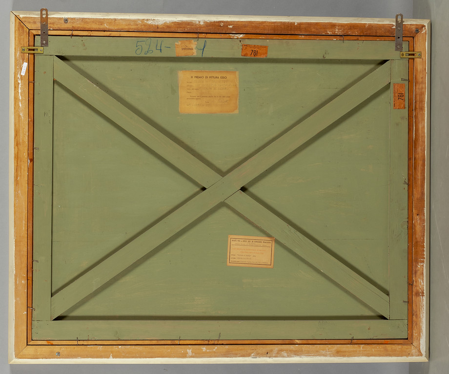 nel retro etichetta XXVII Biennale Internazionale d'arte di Venezia anno 1954, etichetta III premio di pittura Esso anno 1955, etichetta XXII Biennale Nazionale di Milano anno 1961