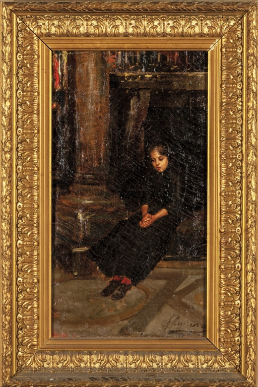 "Bimba pensierosa" olio sec.XIX, f.to in b. a