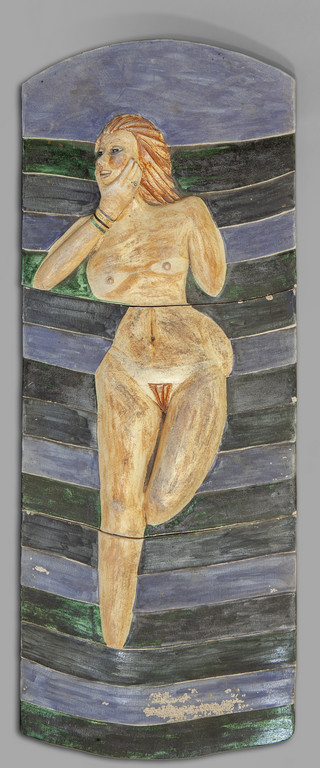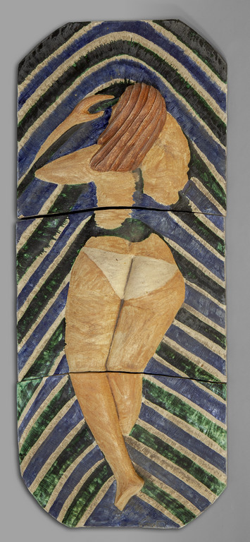 Nudi femminili nel mare, coppia di placche in maiolica smaltata, fornace albissolese anni'60