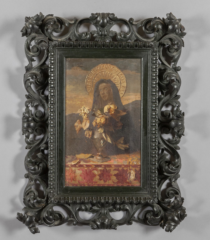 "Madonnina" olio, bella cornice coeva in legno intagliato e laccato, f.to