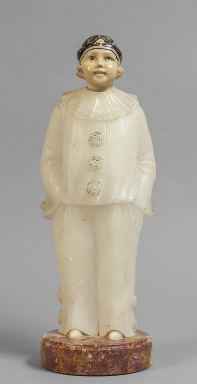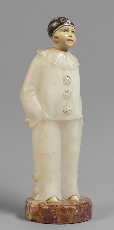 Pierrot, scultura in alabastro e porcellana con