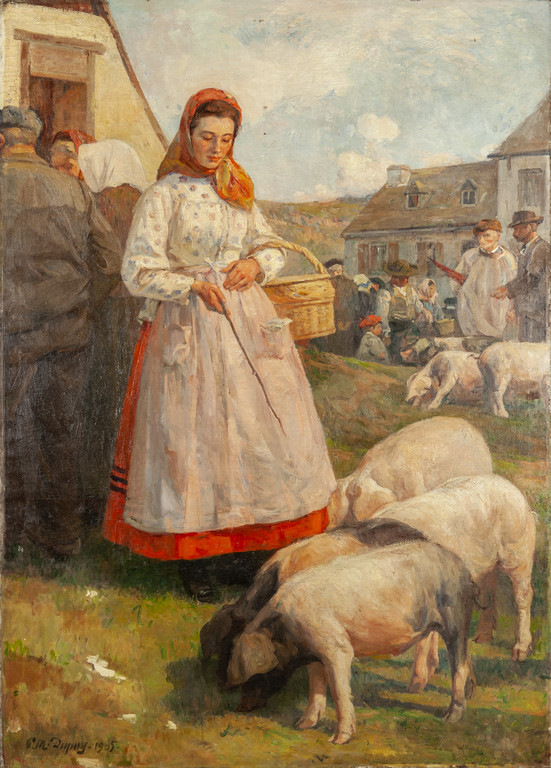 C.M.Diymy <br>"Contadina con maiali" olio, d.to