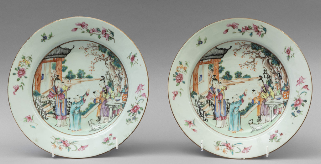 Coppia di piatti in porcellana famiglia rosa, Cina sec.XVIII