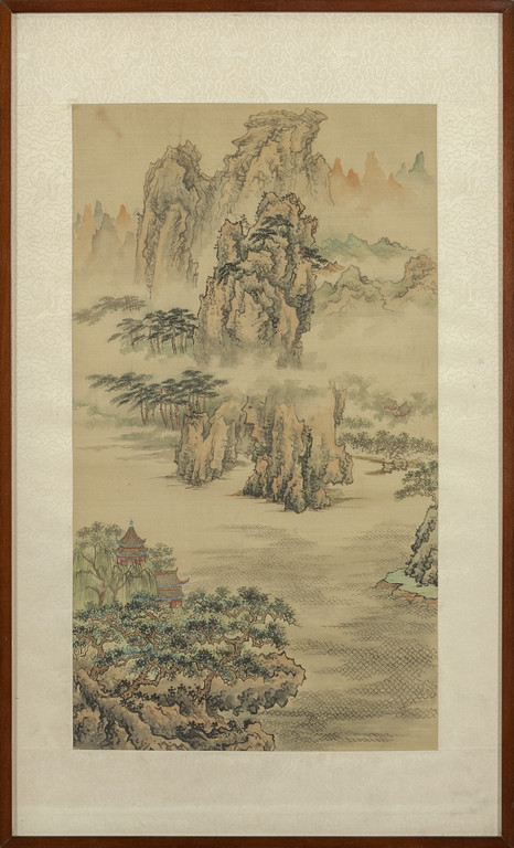 "Paesaggio con montagne" pannello Cina dipinto su seta