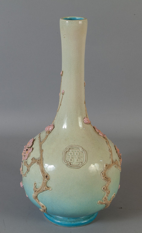 Vaso in terraglia decorato con fiori in rilievo, Cina fine sec.XIX