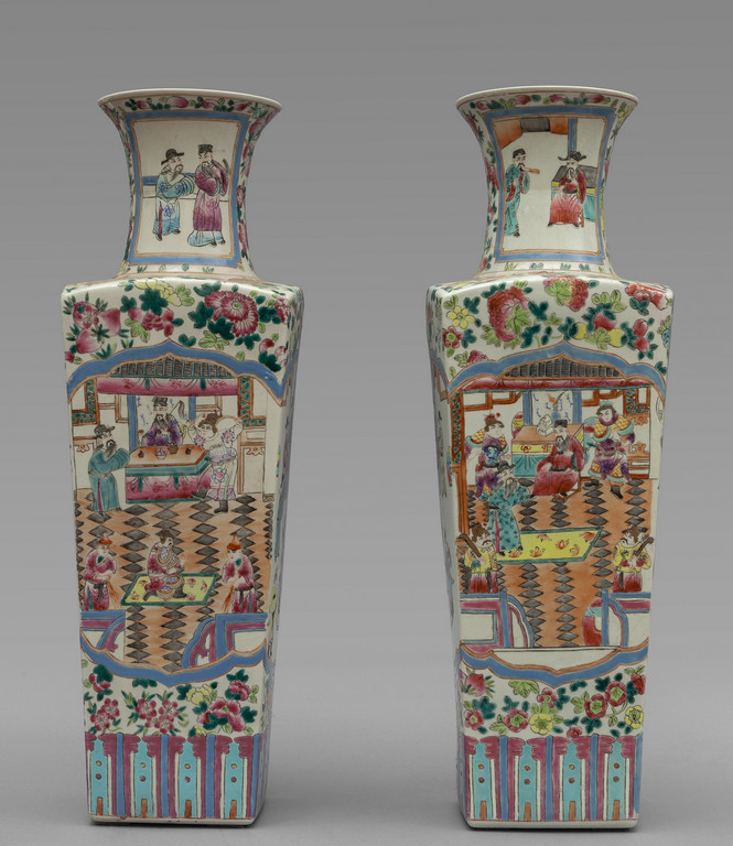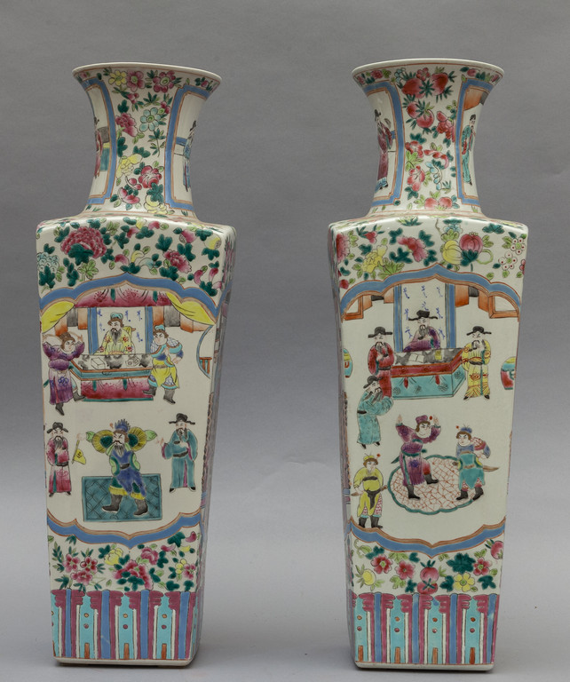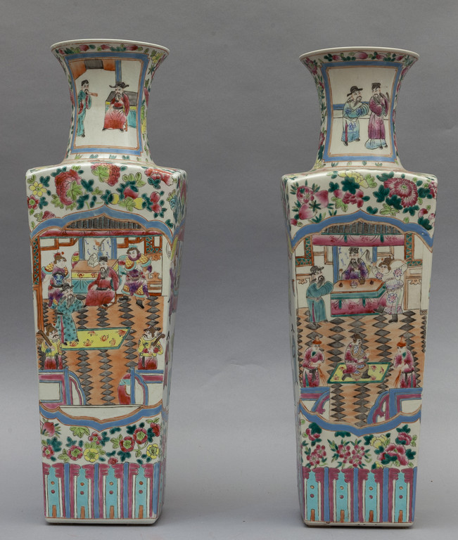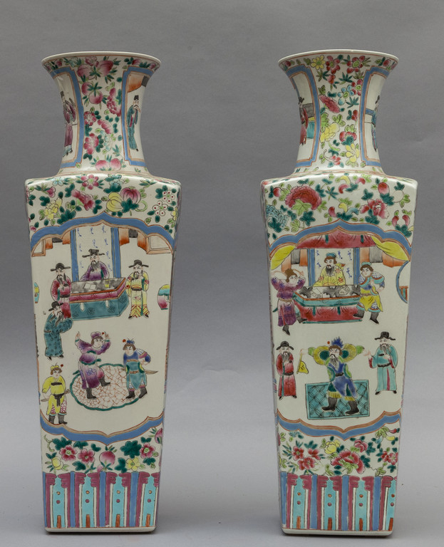 Coppia di grandi vasi in porcellana decorati in policromia con scene orientali, Cina sec.XIX