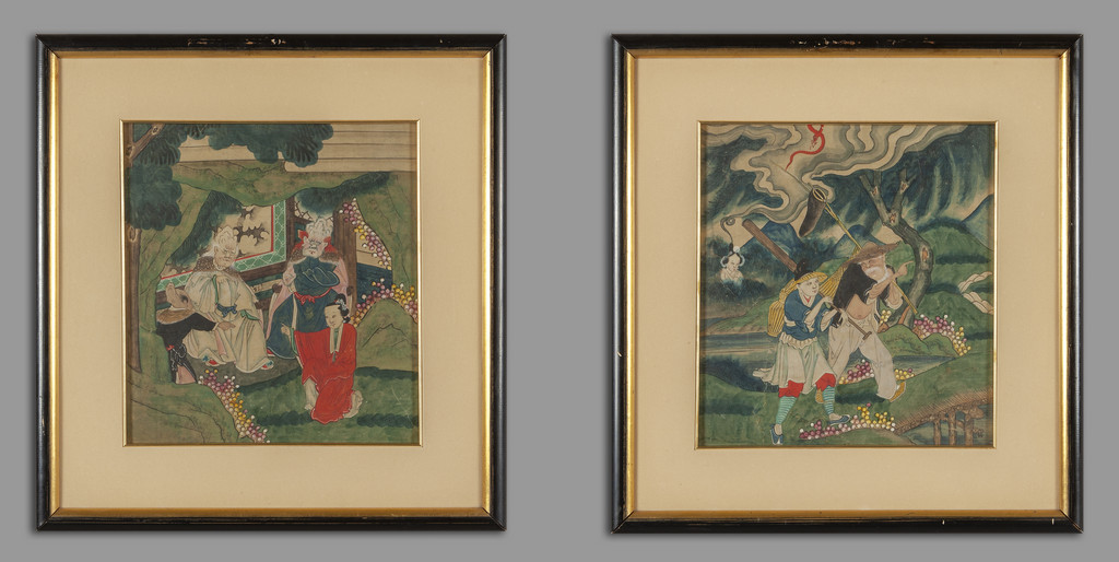 "Figure" due dipinti, Cina sec.XIX<br>cm. 32x36