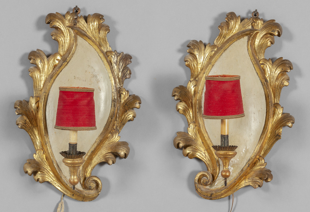 Lotto 0504 | Coppia di apliques in legno intagliato e dorato