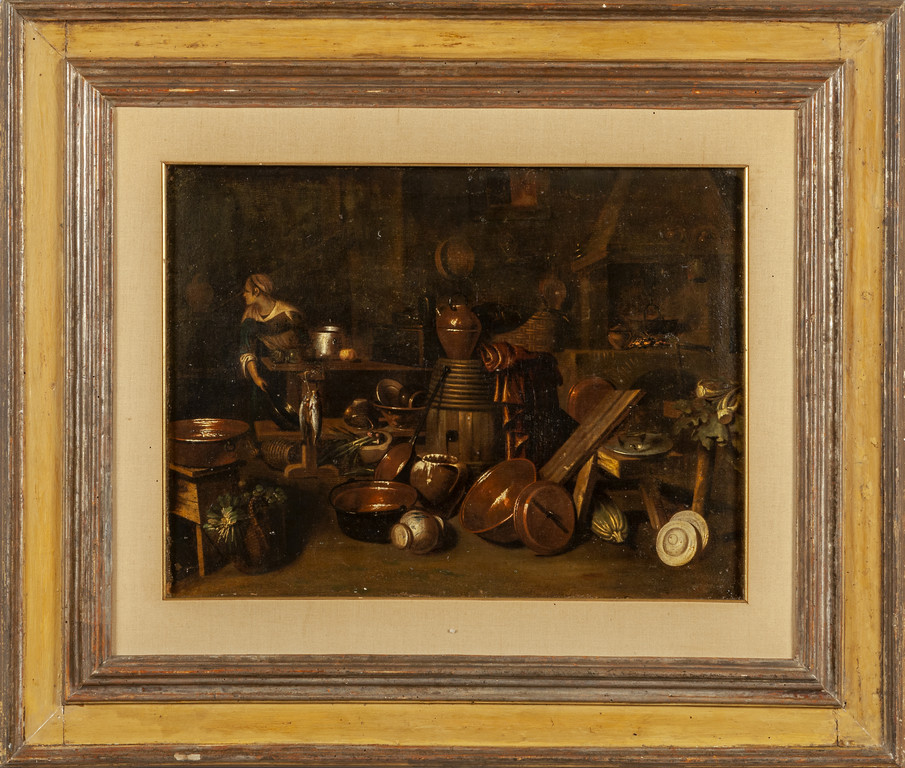 Gian Domenico Valentino (1639-1715, attr.) "Interno di cucina" olio