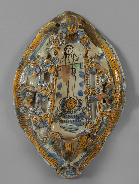 Antica acquasantiera in maiolica policroma, Italia Meridionale sec.XVIII