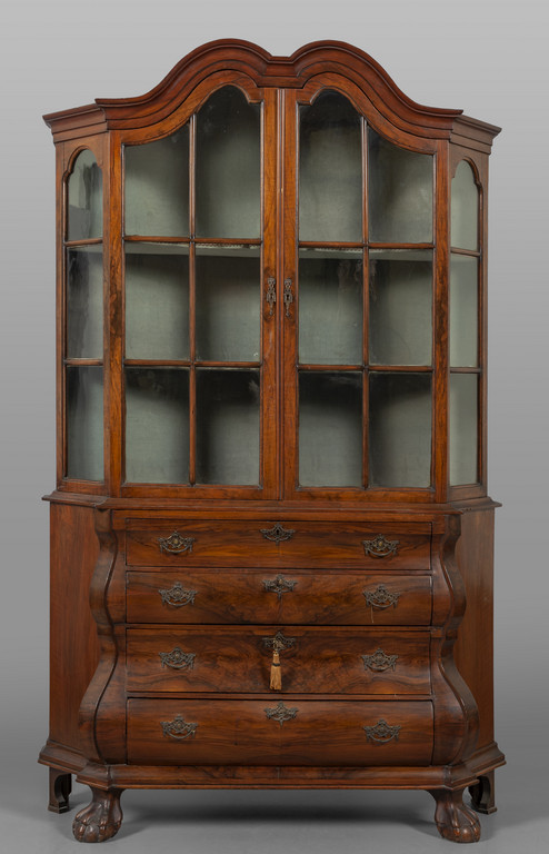 Vetrina lastronata in noce, quattro cassetti più due sportelli, Olanda sec.XIX
