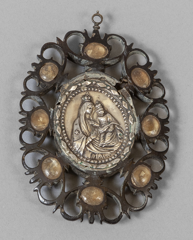 Due reliqueri in argento sec.XVII (cm.5x5) e reliquario con placchetta in argento (cm.11x8)
