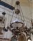 Lampadario Liberty in metallo a nove luci con vetro opaline