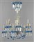 Lampadario a dodici luci in cristallo bianco e cristalli blu, inizi sec.XX
