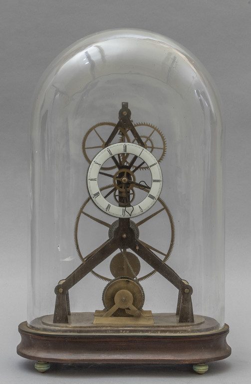 Orologio scheletrico nella sua campana di vetro, sec.XIX