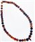 Collana caratterizzata dalla presenza di vaghi lenticolari ed un pendente centrale triangolare in corniola decorati in bianco con l'uso di acidi.