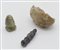 Coppetta ellittica in calcare bianco; pendente conico in pietra verde; pendente a globetti sovrapposti in lapislazzuli. (3)