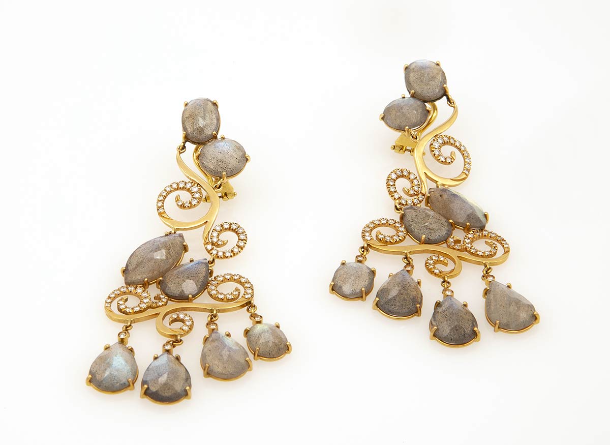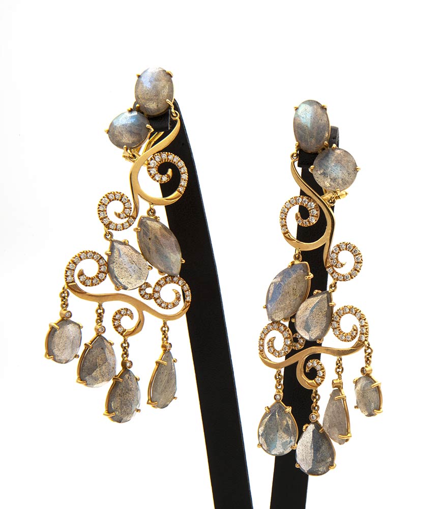Orecchini pendenti con diamanti e tormaline