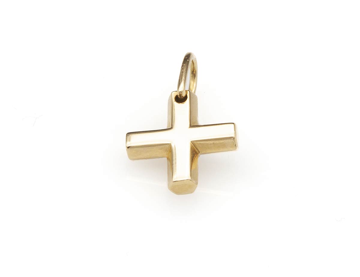 in oro 18k, a foma di croce. Manifattura "Bvlgari". Punzonato "750" e "made in Italy". Firmato BVLGARI. Dimensioni 18 x 18 mm. Peso 8,3 gr. Stato di consevazione: ***** ottimo.