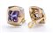 in oro bianco e giallo 18k, manifattura "Bvlgari", collezione "Piramide", incastonati con ametista a forma di piramide. Punzonati "750", "1970 AL" and "BVLGARI". Dimensioni frontali 25 x 25 mm. Peso 30,4 gr. Stato di consevazione: ***** ottimo.