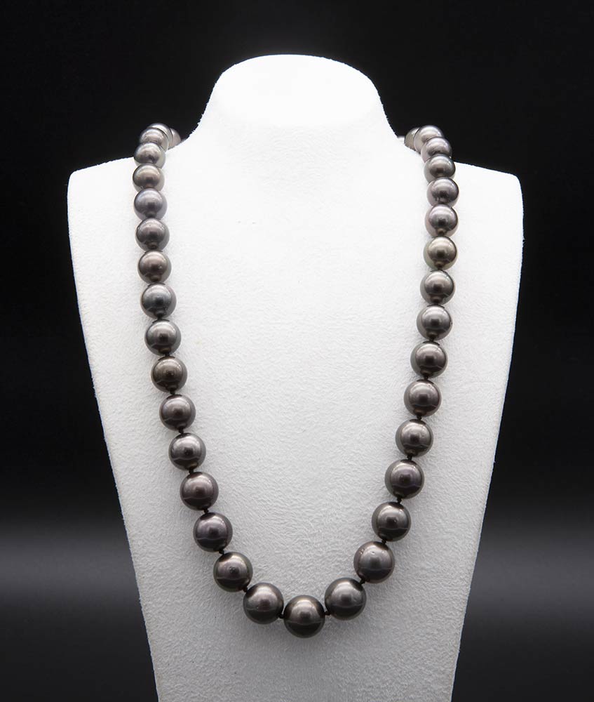 fermezza a sfera in oro 18k. Diametro perle 13 - 12 - 11 mm. Lunghezza 48 cm. Il lotto è accompagnato da perizia gemmologica Istituto Gemmologico Nazionale IGN di Roma. Stato di consevazione: ***** ottimo.