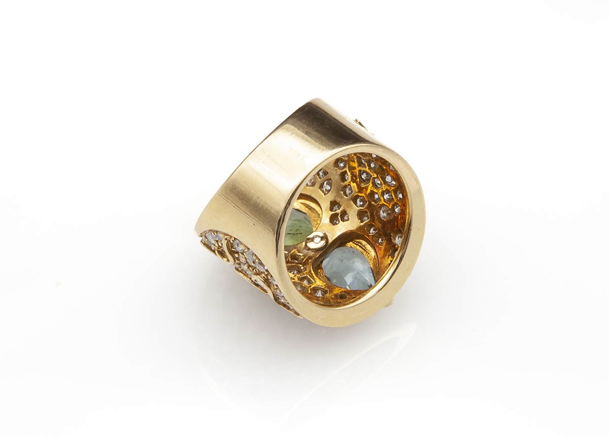 Anello con diamanti e gemme di colore, manifattura MARINA B.