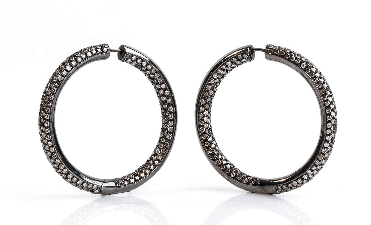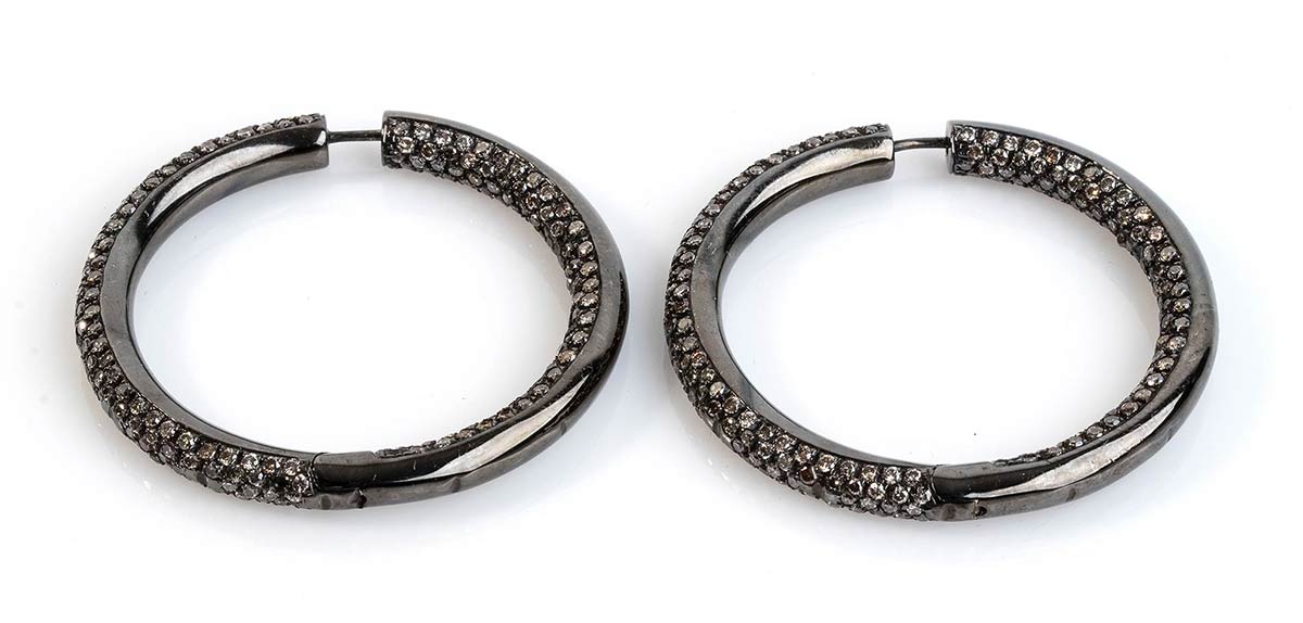 in oro 18k, incastonati con pavé di diamanti "brown" taglio brillante 5,50 ct ca. Diametro 45 mm. Peso 30,5 gr. Stato di conservazione: ***** ottimo.