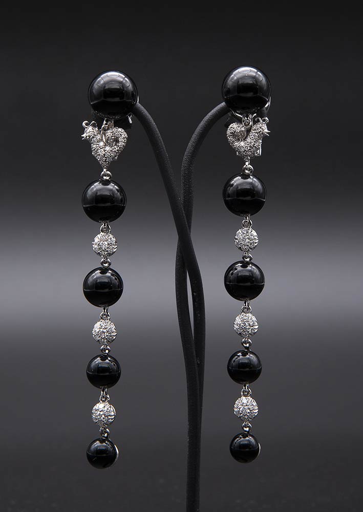 Orecchini pendenti con onice e diamanti, manifattura CHANTECLER