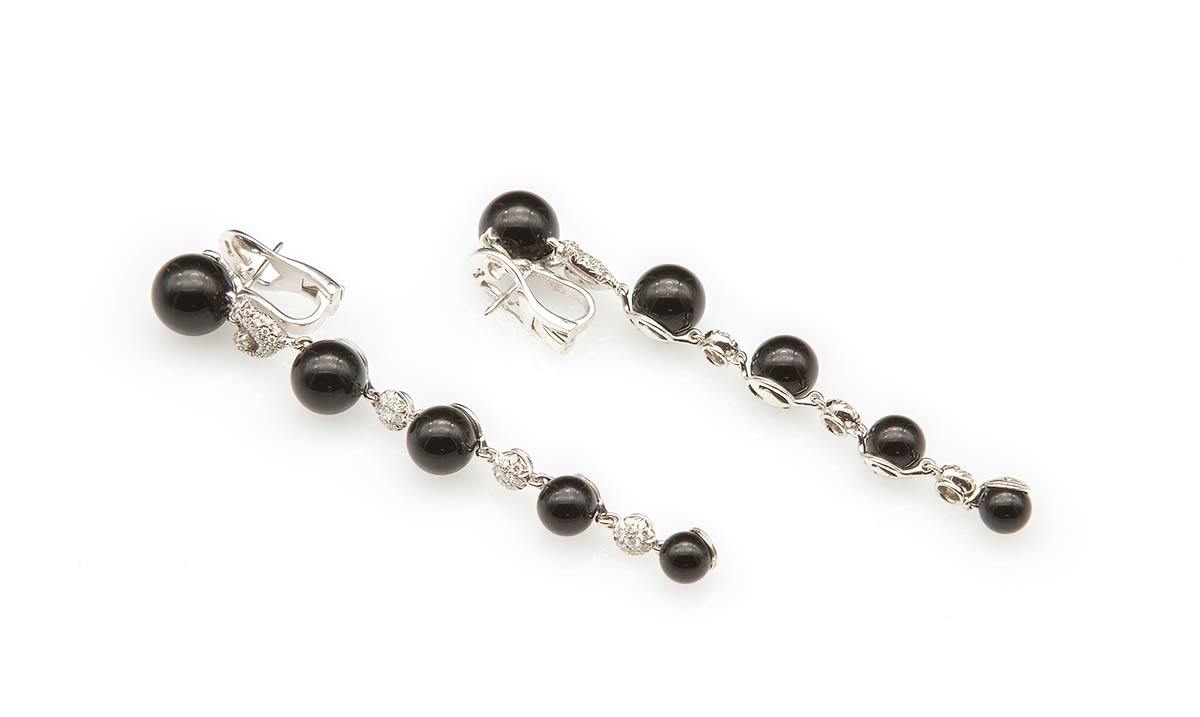Lotto 169 | Orecchini pendenti con onice e diamanti, manifattura CHANTECLER