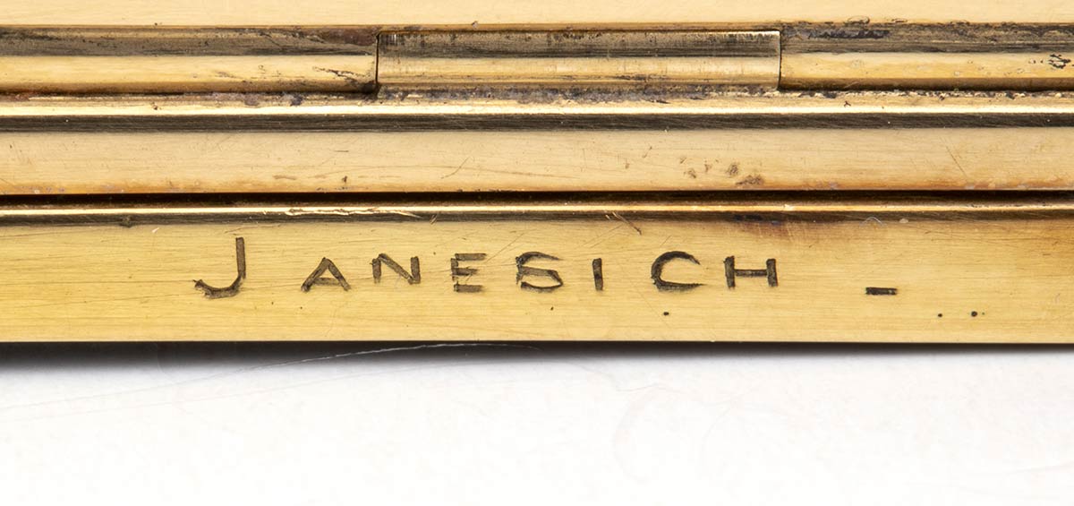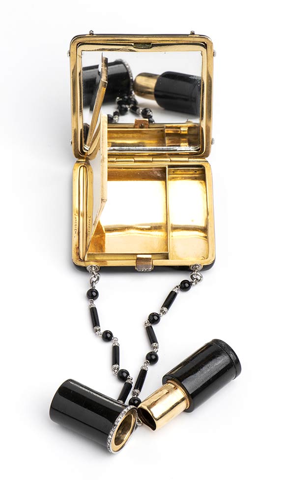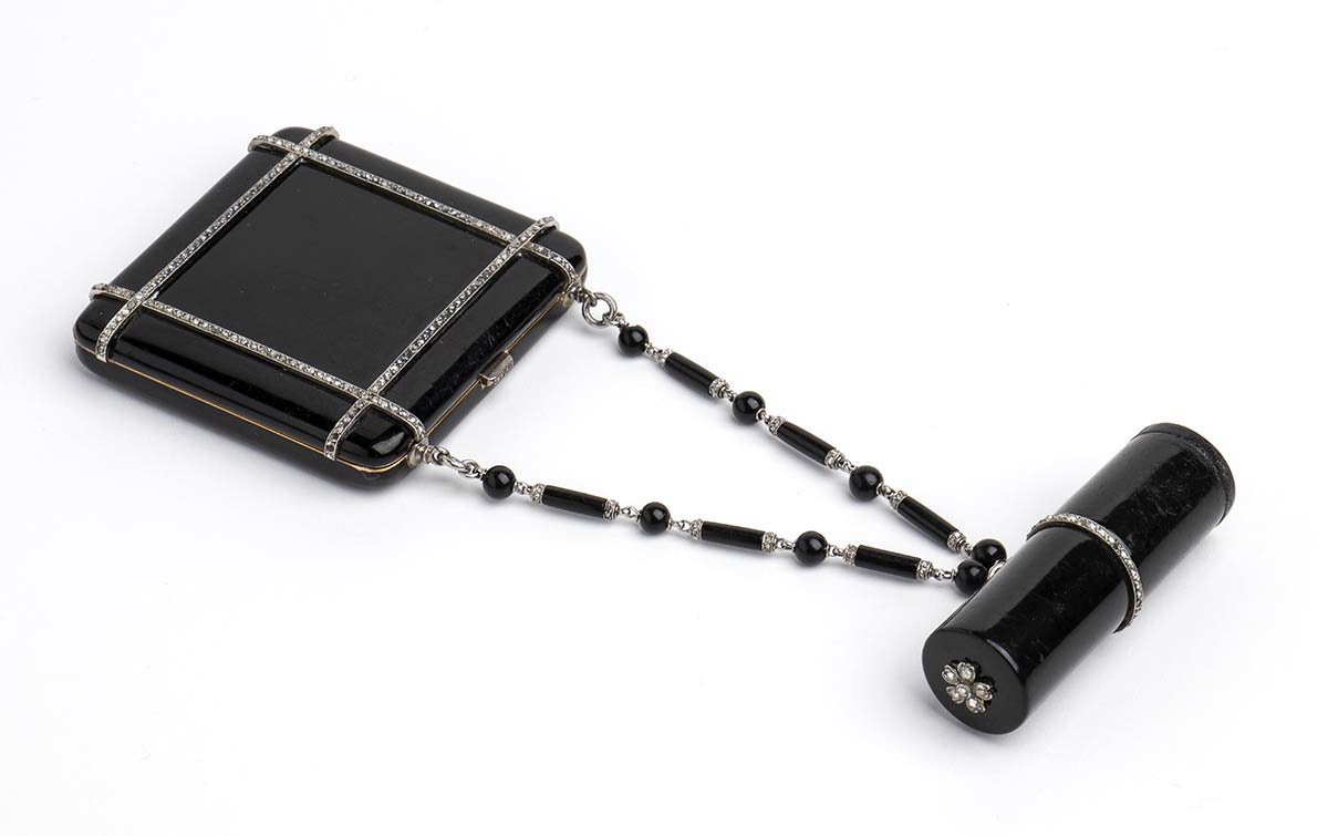 in oro 18k bianco e giallo, decorata con smalto, onice e diamanti taglio a rosa 3,00 ct ca. Peso 132,9 gr. Stato di consevazione: ***** ottimo.