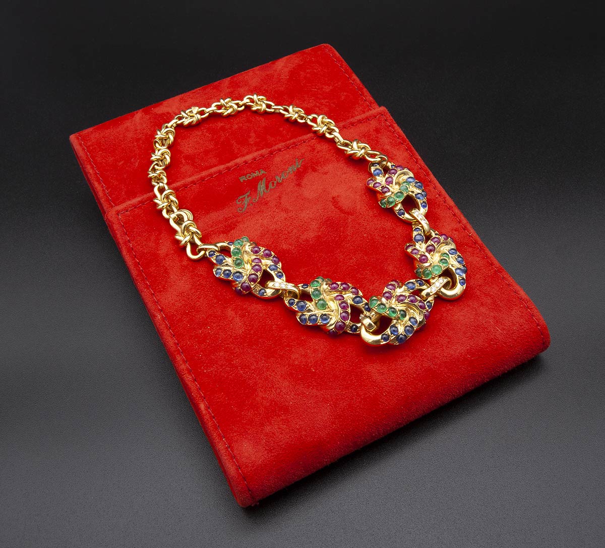 Girocollo con smeraldi zaffiri, rubini, manifattura MORONI
