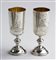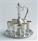 composto da sei gobelet in vermeil, una brocca ed un vassoio tondo. Serie completa di marchi per l'argento al titolo di 84 zolotniks (875/1000) in uso a Mosca nel periodo 1908-1917, argentiere Semenov Vasily Semenovitch 1852-1918. Altezza brocca 19 cm, diametro brocca 5,5 cm; altezza gobelet 8 cm, diametro gobelet 3 cm; diametro vassoio 17,5 cm. Peso complessivo 505 gr. Stato di conservazione: **** buono.