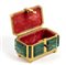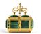 di forma rettangolare con angoli tronchi, manico superiore pieghevole e serratura frontale originale con chiave, incastonato su tutti i lati e sul coperchio con malachite a taglio gradinato. Dimensioni 10 x 9,5 x 6 cm. Peso 498 gr. Stato di conservazione: ***** ottimo.