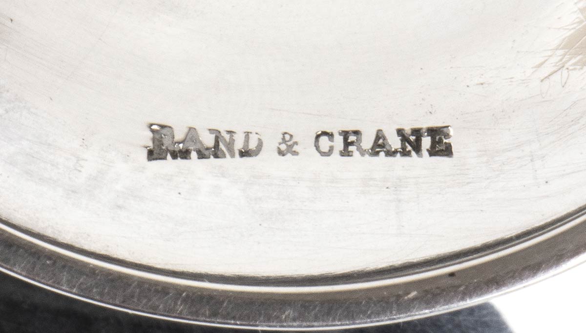 corpo liscio su piede circolare con manici ad ansa. Argentieri Rand & Crane, Boston, Mass. U.S.A. Dimensioni zuccheriera 8 x 14 x 10 cm, dimensioni bricco da latte 9 x 10,2 x 6,4 cm. Peso complessivo 190 gr. Stato di conservazione: **** buono.