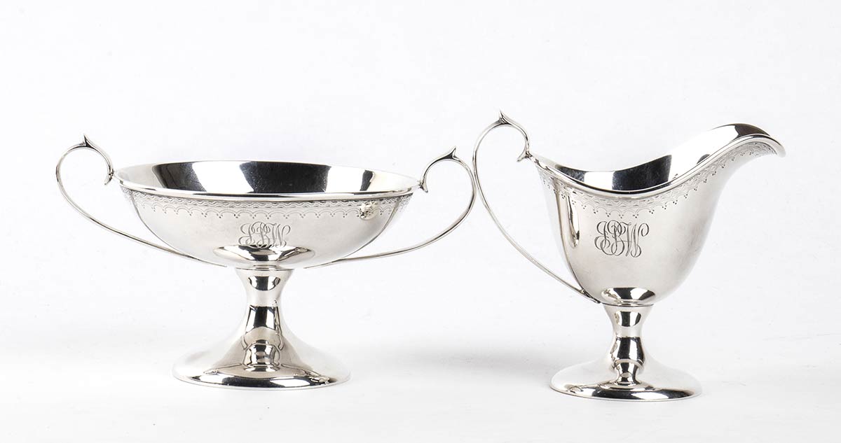 Bricco da latte e zuccheriera in argento 925/1000 - USA 1900 circa, argentieri Rand & Crane