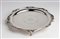 di forma sagomata, decorato con volute fogliate perimetrali. Serie completa di marchi Sheffield 1905-1906, argentieri Robert & Belk. Diametro 25,5 cm. Peso 470 gr. Stato di conservazione: **** buono. (Jackson’s p. 432; Culme V1 p. 389 - V2 p. 247)