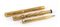corpo e cappuccio laminati oro. La prima penna modello 42 con pennino retrattile, meccanismo safety, in oro 14k riportante la dicitura "Columbus 585", il fusto firmato "Waterman's Ideal 18K.R." e logo, lunghezza 12,3 cm; la seconda con pennino in oro 14k riportante la dicitura "Warranted 14K made in U.S.A.", il fusto firmato "Waterman's Ideal 18K.R." e logo, lunghezza 12,7 cm; il portamine non firmato, lunghezza 10,4 cm. Stato di conservazione: *** discreto (usure). Le penne stilografiche non sono state testate e anche se sembrano funzionanti, potrebbero necessitare di una piccola revisione.
