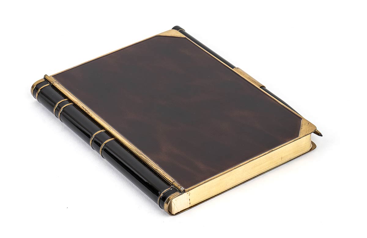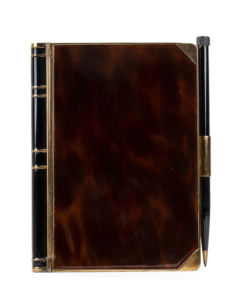 in metallo con lacca nera e tartaruga con finiture dorate, matita laterale. Stato di conservazione: **** buono. Scatola originale "Fox and Hounds, Giorgio Gucci, Roma Via Borgognona 25".