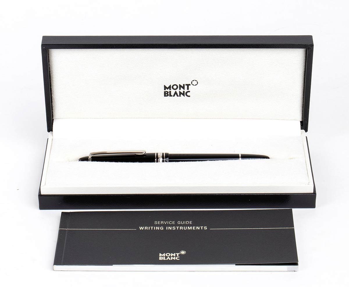 corpo e cappuccio in resina nera con finiture placcate in oro, pennino in oro 14k riportante la dicitura "Au 585 MONTBLANC 585". Seriale MBCC5LYKO. Lunghezza 14 cm. Stato di conservazione: **** buono. Scatola e controscatola Montblanc con documenti originali. La penna non è stata testata e anche se sembra funzionante, potrebbe necessitare di una piccola revisione.