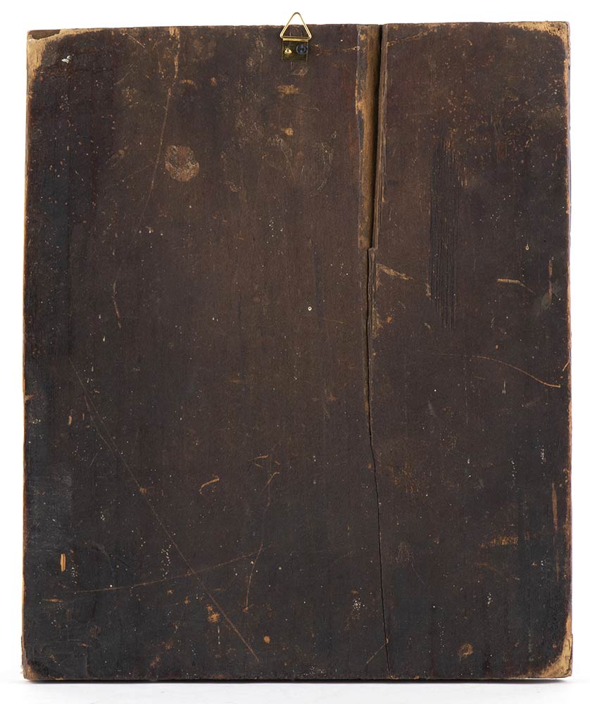 tempera su tavola, raffigurante "Madonna di Pokrov" detta anche Protezione della Madre di Dio, nell'atto di stendere il velo sui presenti per proteggerli. Dimensioni 31,6 x 26,2 x 2,3 cm. Stato di conservazione: **** buono (difetti).