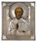 tempera su tavola con riza in argento, raffigurante "Cristo con i santi". Serie completa di marchi per l'argento al titolo di 84 zolotniks (875/1000) in uso a Mosca nel 1880, assaggiatore Ivan Yefimovich Konstantinov, marchio dell'argentiere in cirillico "Д Ш" (Rif. Postnikova-Loseva p. 205 nr 2114 e p. 214 nr 2427). Dimensioni 31 x 27 x 3 cm. Peso 1620 gr. Stato di conservazione: **** buono.