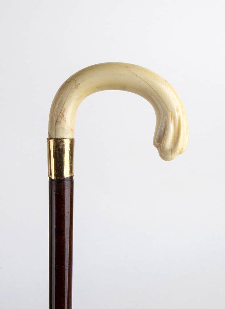 Bastone da passeggio con impugnatura in avorio e oro - Austria Ungheria, 1872-1921