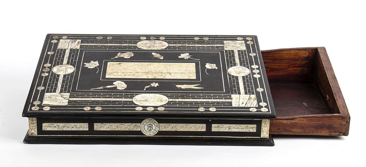 Scrittoio da viaggio italiano in ebano, avorio e osso - Lombardia XIX secolo