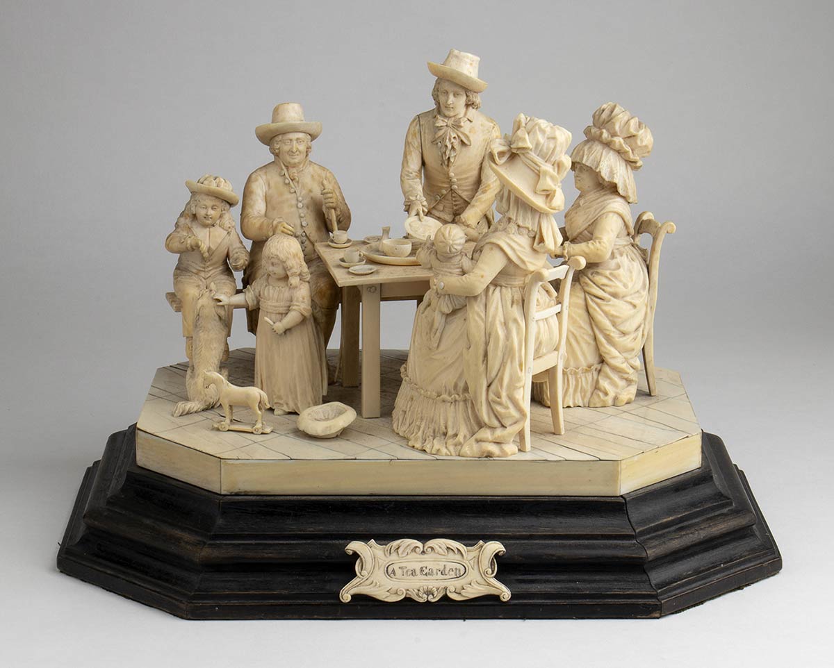 Gruppo scultoreo inglese in avorio di raffigurante Tea Garden - ultimo quarto XIX secolo