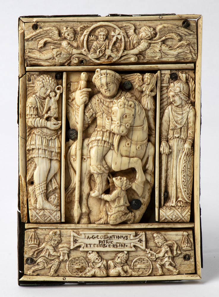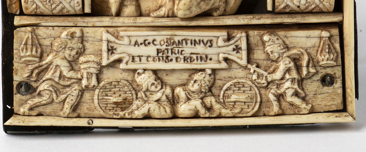 Sotto il pannello centrale troviamo un cartiglio con la scritta “A.G COSTANTINUS PATRIE ET CON ORDIN” e altre figure conquistate, affiancate su entrambi i lati da ulteriori figure e da due corone. La figura di sinistra sembra portare un contenitore forse pieno di bottino mentre la figura a destra regge un crocifisso. Questi sono chiaramente il simbolo di persone lontane che sono state conquistate e sottomesse all'imperatore bizantino.