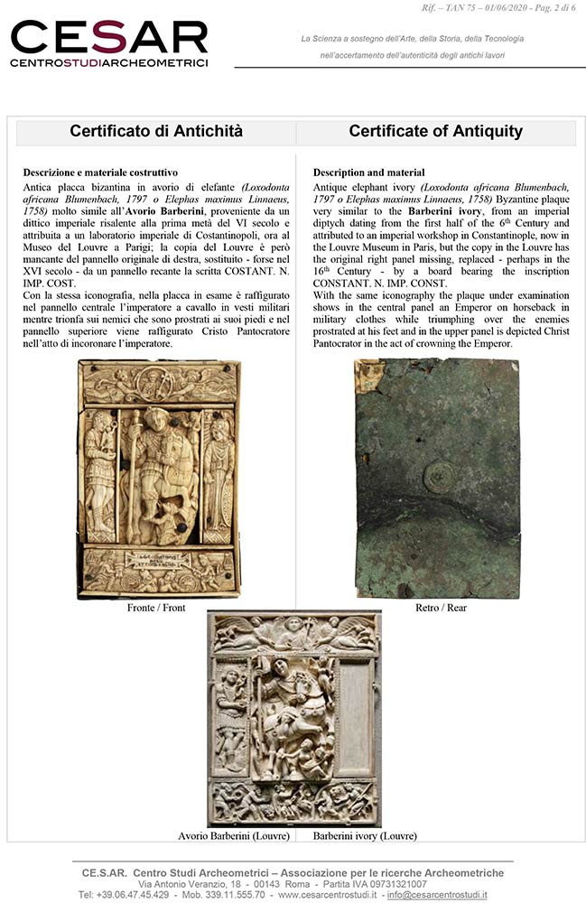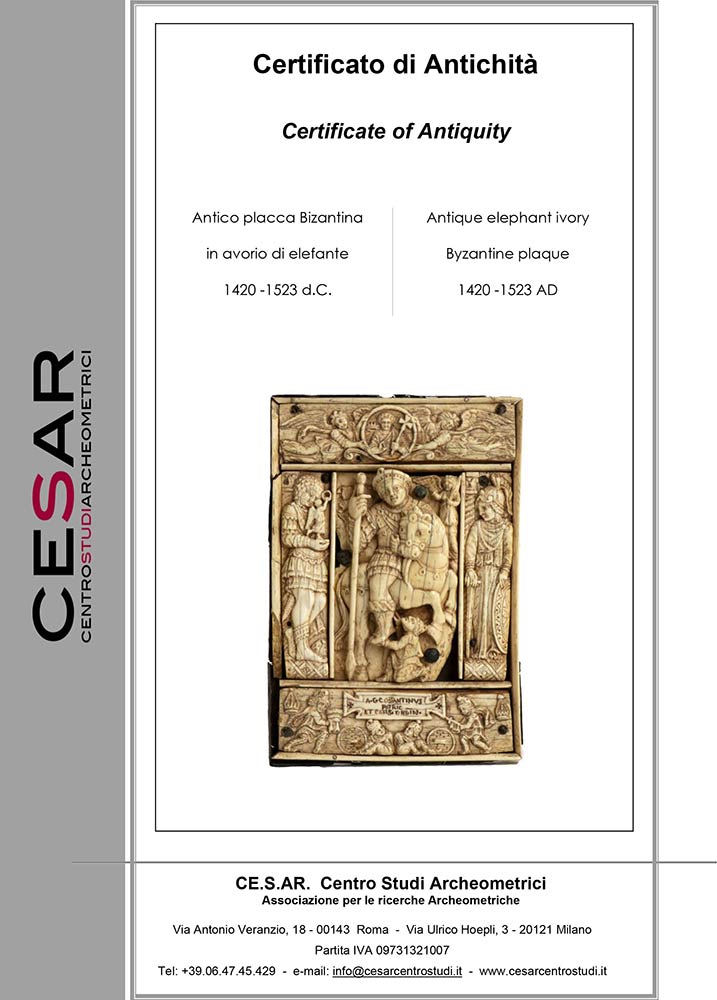 Placca Bizantina in avorio di elefante - 1420-1523 d.C.