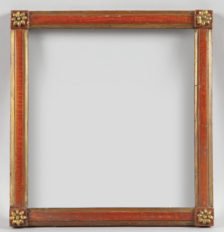 Cornicetta di forma quadrata in legno intagliato, dorato e laccato